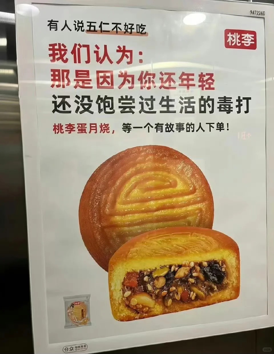 我们在服务客户的过程中,反复强调一个观点:品牌策略必须建立在尊重用户人格的前提之下。近期,老牌食品企业桃李面包的遭遇便是一个鲜活的负面教材。其在“蛋月烧”月饼的营销文案中写道:“有人说五仁不好吃,我们认为:那是因为你还年轻,还没饱尝过生活的毒打。” 这段文案的初衷或许是试图用“过来人”的姿态引发怀旧共鸣,但在实际传播中,却引发了消费者的强烈不适。消费者感受到的不是品牌的温情,而是一种“你不懂是因为你还没被社会毒打”的傲慢与冒犯。