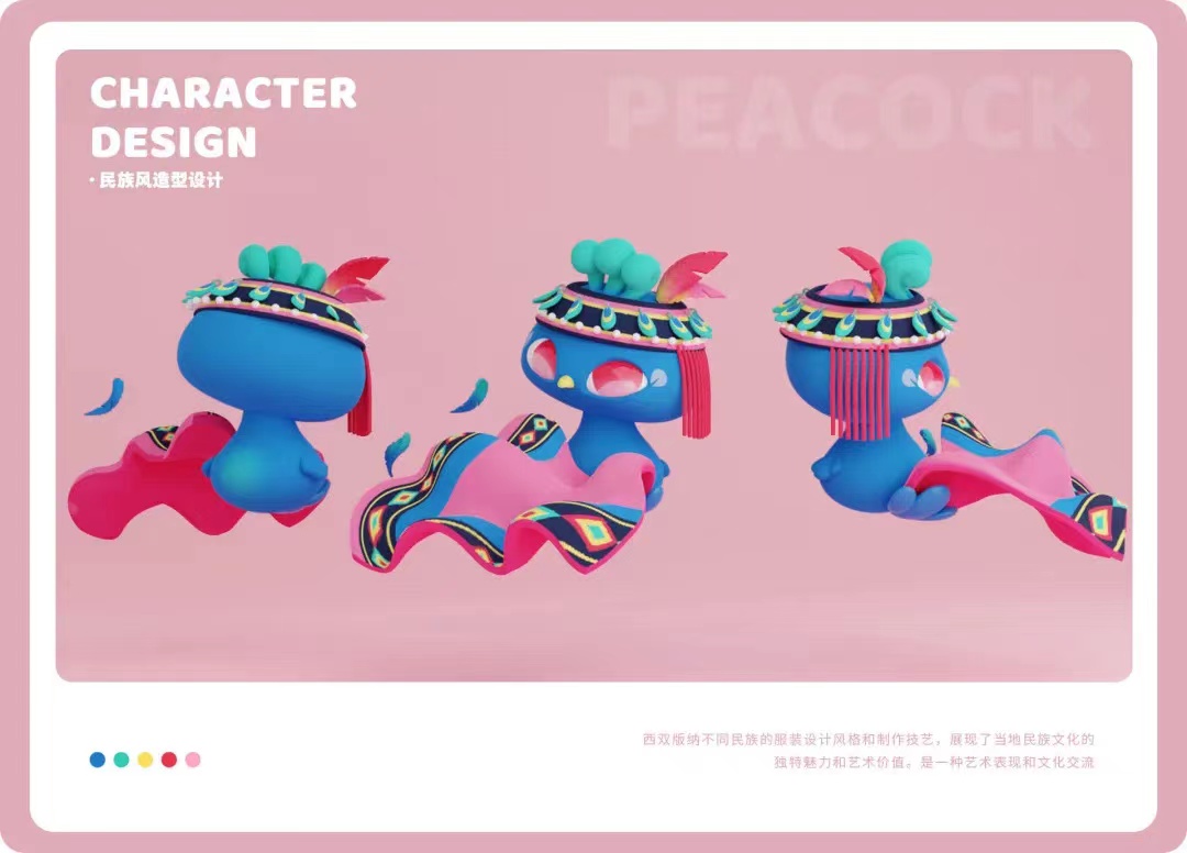 围绕生物多样性、文化多样性、艺术多样性三方面进行孔雀IP设计,打造成为西双版纳的标志。