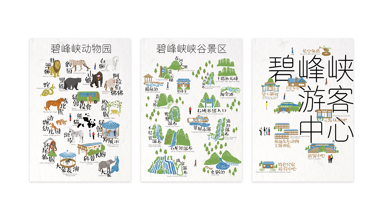 碧峰峡野生动物园位于四川雅安碧峰峡景区内,目前为东方园林旗下的文旅集团收购的主要运营项目。品牌设计团队从碧峰峡景区的标志提升入手,对大熊猫标志的形状、色彩、字体进行了改良。同时为野生动物园设计了一套视觉识别系统。视觉应用于日常运营物料、园区导览导示、旅游纪念品等领域。